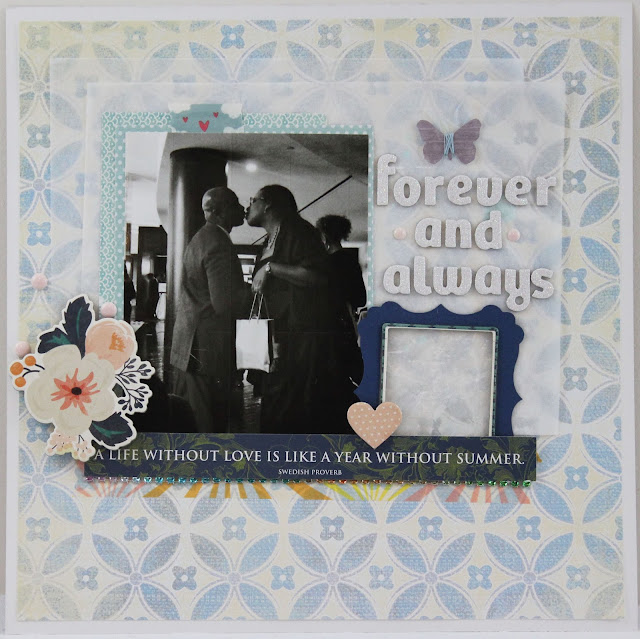 I can confidently say that I do both. I am getting better about using the products that I buy and buying mostly the products that I will use. By making stash kits I have really been able to get to know my habits and am more aware of which products will actually make the page and which ones won't. Certain types of stickers and die-cuts are really pretty but I won't ever use them because they are not my style. The pages that I share today kinda reinforce that I don't need to force products onto the pages. That I really don't put things onto my pages just to "use them up". Every thing that I use has a purpose and a place on my pages and if I "use it up", that is a bonus:).