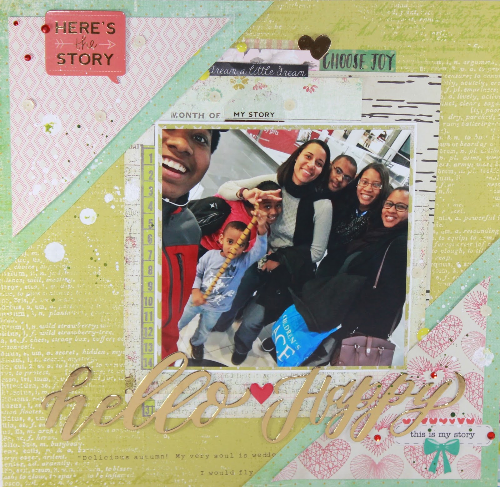 It feels great to get some of the hundreds of items that I have accumulated over the years used up. The one thing that I want to make sure that that I'm not doing is using stuff to get it used up. I want to be happy with what I am creating. Don't get me wrong, sometimes I create just to try out ideas and techniques and I consider those pages easy to throw away. So far so good. Every layout is not good to me but seeing how patterns and papers and colors work together helps me to avoid buying things that I will not use (hello acetate. I'm talking to you!).